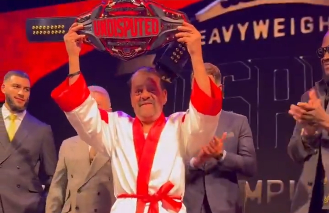 Roberto Durán lució un cinturón conmemorativo en el anuncio de la pelea entre Bivol y Beterbiev