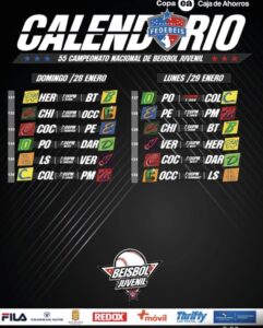 Partidos del sábado 10 de enero Béisbol Juvenil 2026