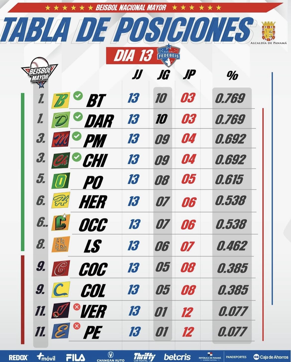 Bocas del Toro 3-9 Potros del Este Chiriquí 8-2 Colón Chiriquí Occidente 9-14 Darién ...