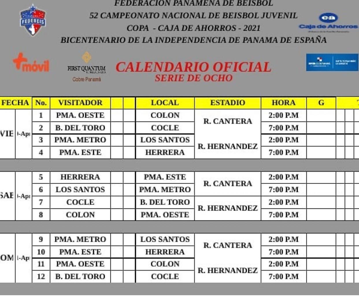 TODOS LOS PARTIDOS PLAY BALL 7 PM Bocas del Toro vs Darién / Meteti ...
