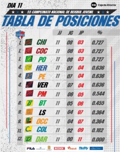 Tabla de posiciones luego de la Jornada 11 del Béisbol Juvenil 2024