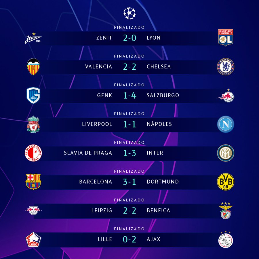 Todos los resultados de la jornada de Champions League