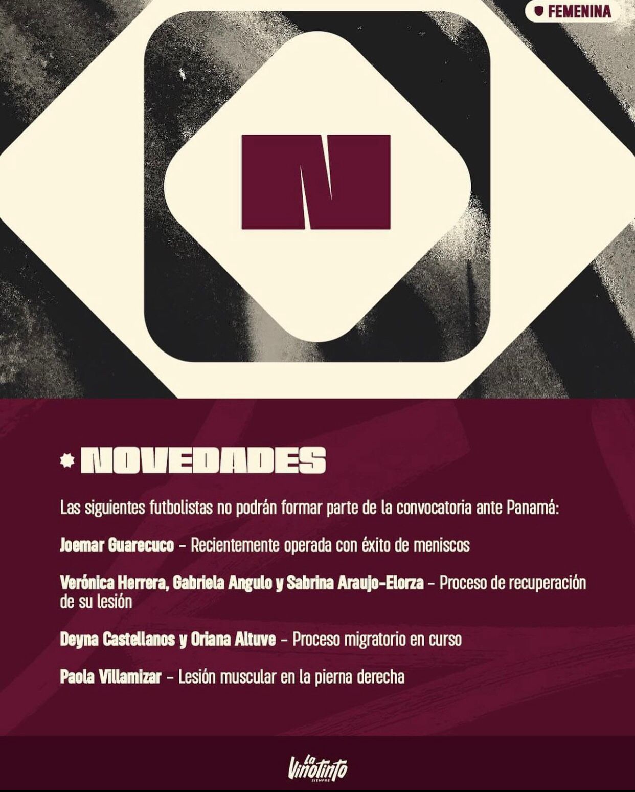 Bajas de la selección femenina de Venezuela ante Panamá