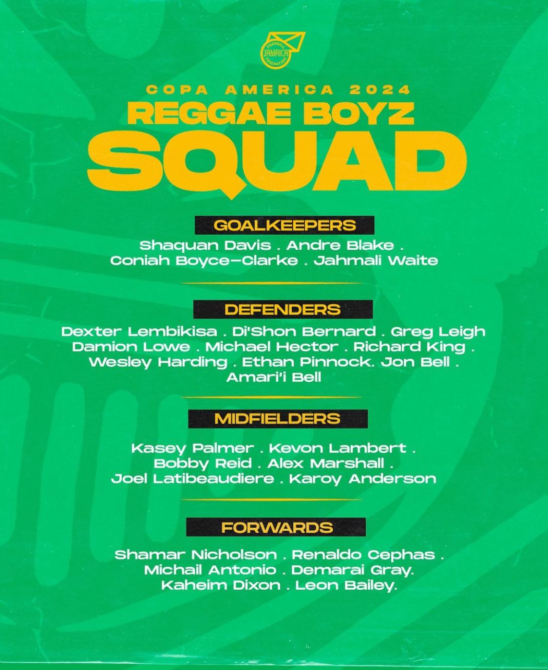 Conoce la convocatoria de Los Reggae Boyz para la Copa América 2024