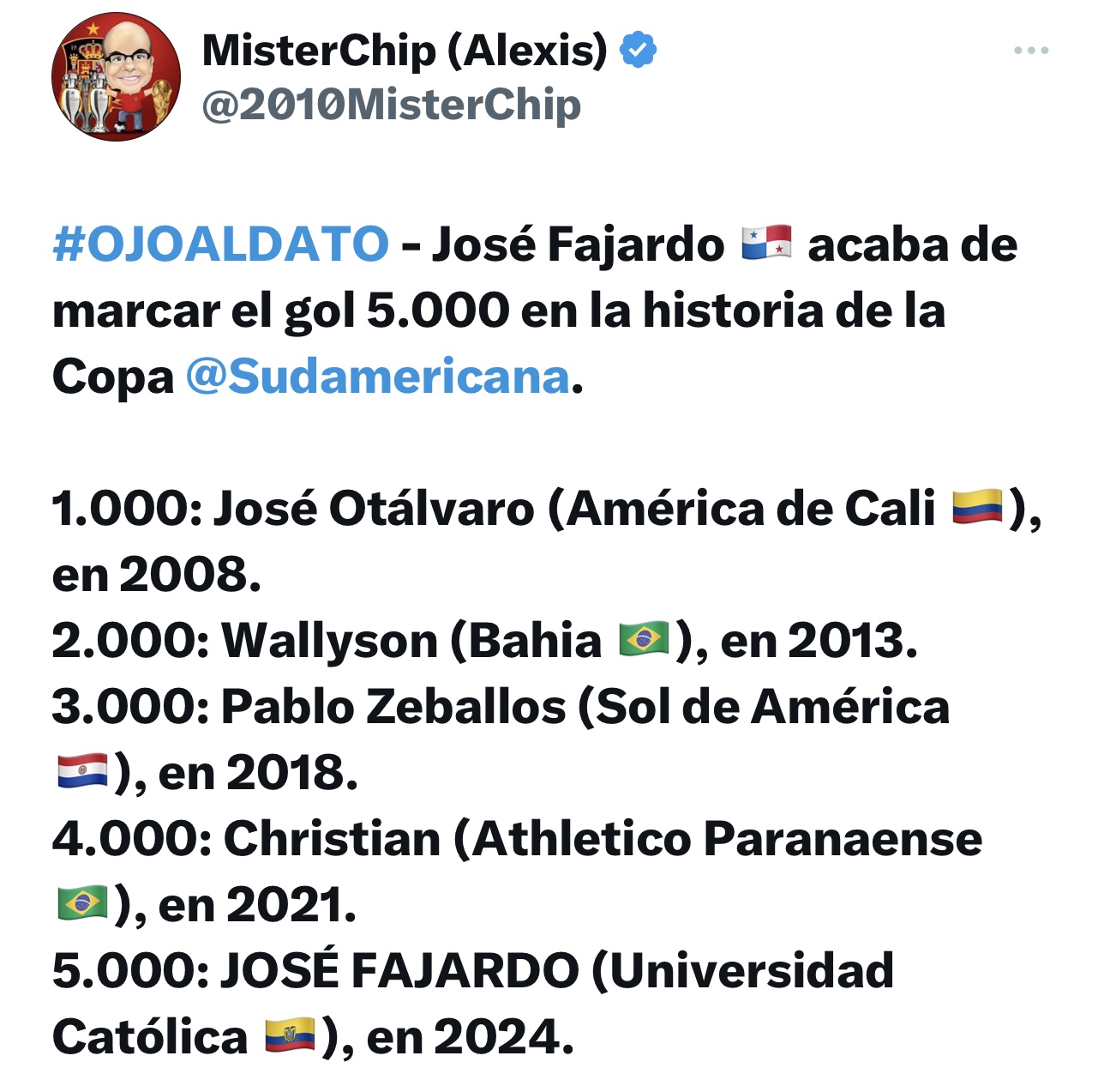Fajardo hizo historia en la Copa Sudamericana