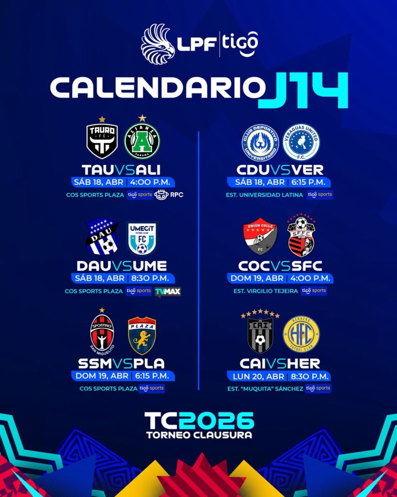 CALENDARIO DE LA JORNADA 14 DE LA LPF