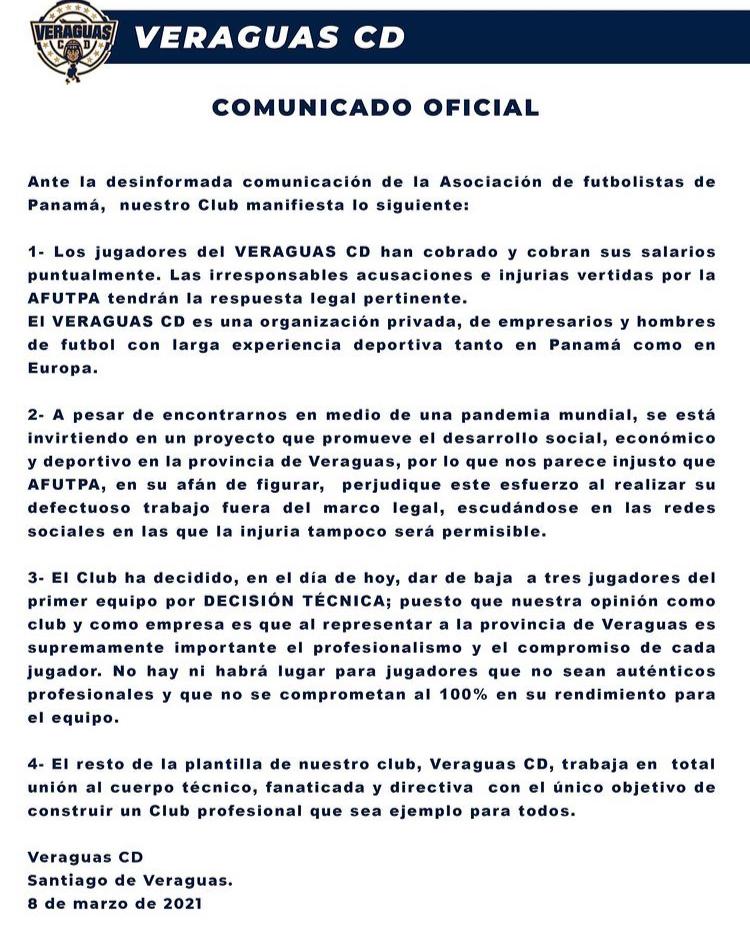 Veraguas despide a jugadores, Afutpa reaccionó