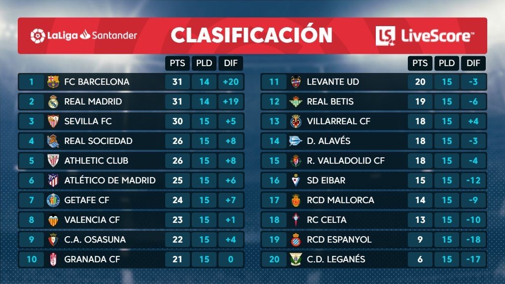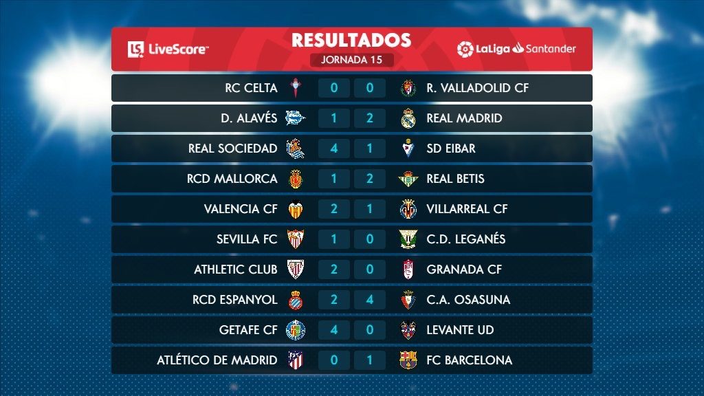 Resultados y clasificación de la Liga Española