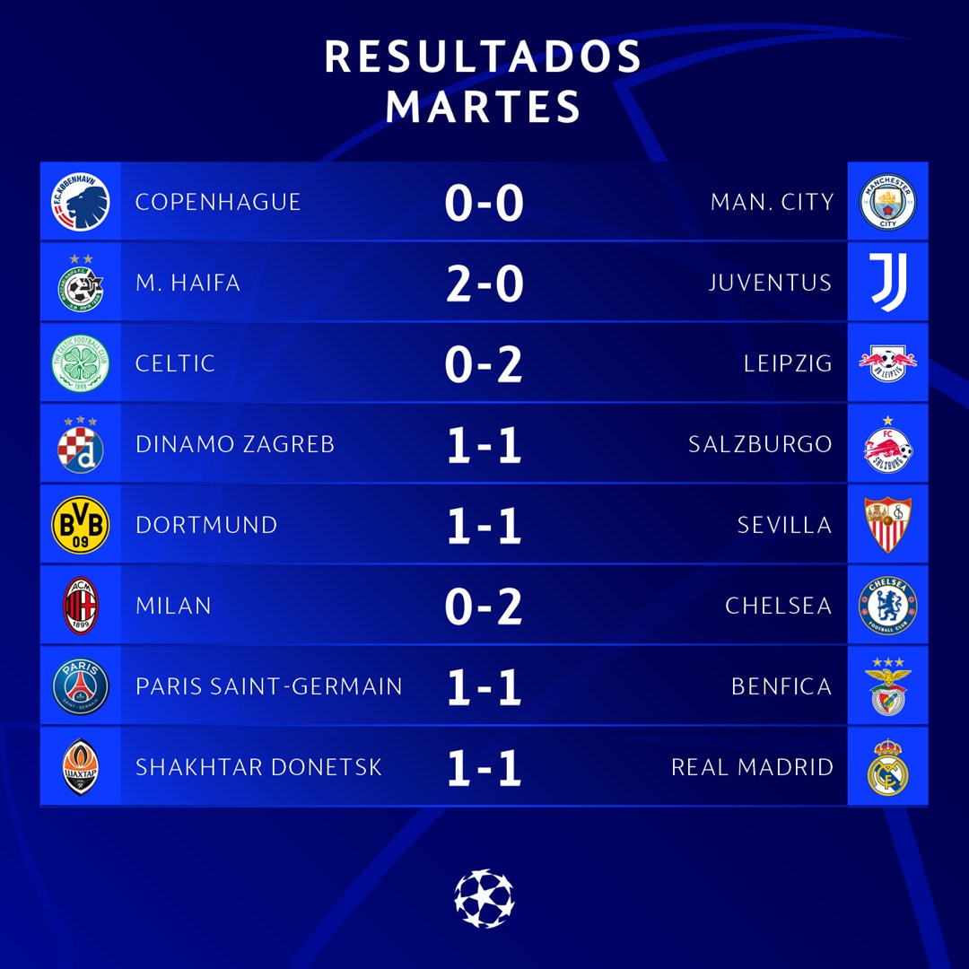 Jornada de sorpresas y goles en la noche del martes en la UEFA Champions League. El Sevilla empató a domicilio, mientras que el Real Madrid y el Manchester City lograron la clasificación a pesar no lograr la victoria.