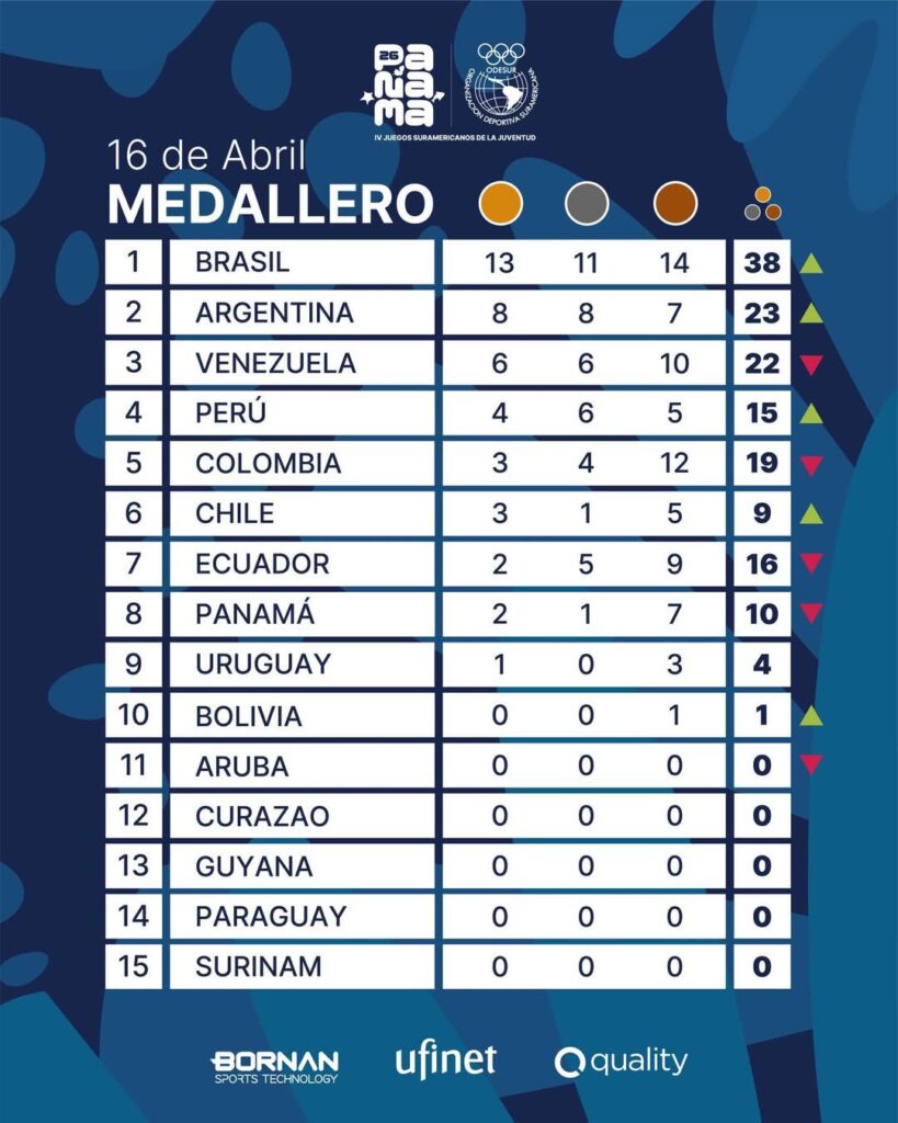 ASÍ AVANZA EL MEDALLERO EN LOS JUEGOS SURAMERICANOS